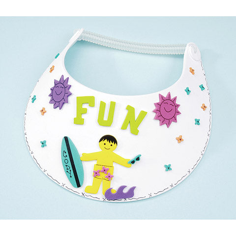Bright colored visors with vinyl coil in back adjusts to expand for right fit. Ready to decorate. Sturdy construction,