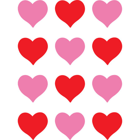 Have fun decorating with these sweet pink and red hearts that measure about 2-5/8". Use them to accent displays, to fill in monthly calendars, or as pieces for learning games like sorting, patterning, and graphing. Each pack includes 36 pieces in 2 colors. Recommended age 5+ years