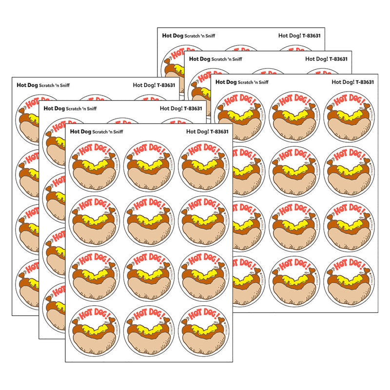 Get a whiff of this Hot Dog!, hot dog-scented sticker! TREND Scratch 'n Sniff Stinky Stickers® from the '80s are BACK! Fun to collect, trade, and celebrate accomplishments and special occasions. Collectors will be happy to spot the ... to distinguish TREND Retro Stinky Stickers® from those printed in the 1980s. Each sticker 1.25" diameter. Each pack includes 24 stickers on 2 sheets in 1 design. Sold as 6 packs for a total of 144 stickers. Recommended age 3+ years