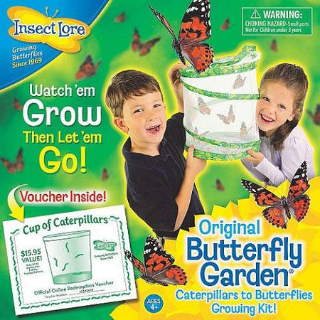 Discover the wonder of Mother Nature with the Insect Lore Original Butterfly Garden Caterpillars to Butterflies Growing Kit. Redeem the included voucher for your Cup of Caterpillars (additional fees may apply) and watch your caterpillars eat and grow until each one finally creates its own glittering chrysalis. After a short period of 7 - 10 days, a fully formed butterfly will emerge, and you can transfer each one into the included habitat to observe the natural beauty of the painted ladies before setting them free into the world !