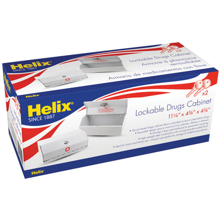 Ideal for home, office, and dorms, the Lockable Drug Cabinet keeps prescription drugs locked away from children and those for whom they are not prescribed. Heavy duty steel safe mounts easily to a wall or cabinet with included hardware in multiple positions! Durable, white powder coat finish easy to clean and doesn't draw extra attention to drugs stored inside. Safe includes 2 keys for lock, screws and anchors for mounting and a Red Cross applique. Not intended to act as an absolute fail-safe to entry. Dimensions: 11-1/4" x 4-3/4" x 4-1/4". Recommended age 12+ years