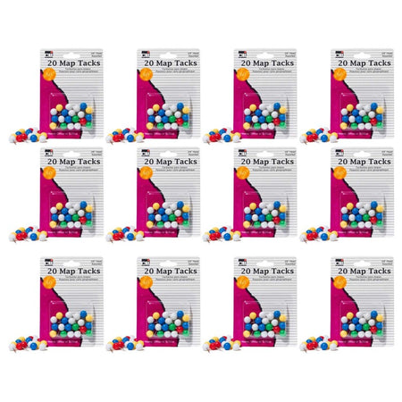 Map Tacks, 3/8 Inch Head, Assorted Colors, 20 Per Pack, 12 Packs