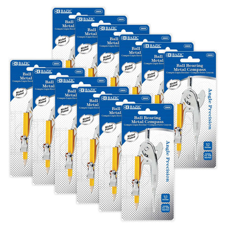Metal Ball Bearing Compass with #2 Wood Pencil, Pack of 12