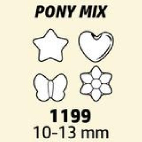 This ½ Lb value pack has a fun mix of heart, flower, butterfly and star shaped pony beads in an opaque color multi.