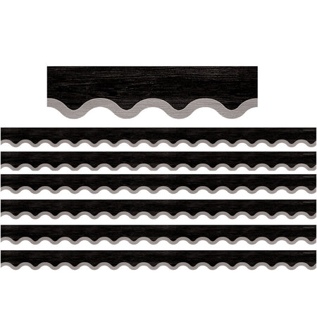 Modern Farmhouse Black with Gray Scalloped Border Trim, 35 Feet, 6 Packs