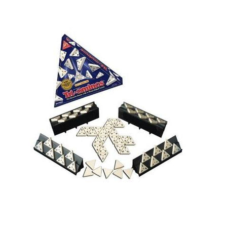 The classic triangular domino game. Score points by matching numbers on the three sided tiles with brass spinners. For 2 to 4 players ages 8 and up. This product is manufactured in United States
