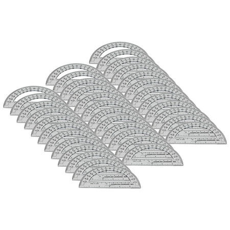 The Charles Leonard Protractor Plastic is a must-have tool for young mathematicians. Each pack of 12 6-inch clear plastic protractors is perfect for students learning about angles. The protractor features an open center and a 6-inch ruler at the base, with measurements in both metric and inches. The sharply defined graduations make it easy for students to identify angles from 0 to 180 degrees, helping to minimize visual errors. The easy-to-read numbers and clear transparent plastic make this protractor durable and long-lasting, ensuring it will be a staple in any classroom or home learning environment. Sold as 3 packs for a total of 36 protractors. Recommended age 5+ years