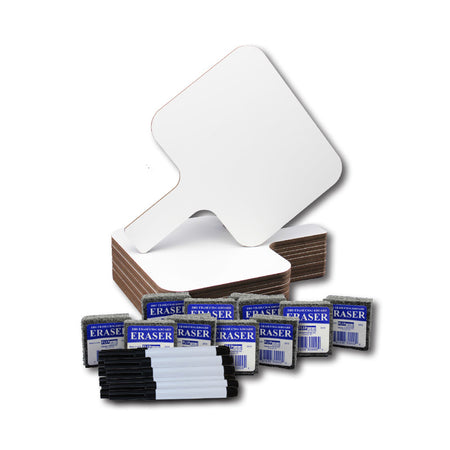 Rectangular Dry Erase 8" x 9.75" Answer Paddle + Pen + Eraser Set, 12 Sets