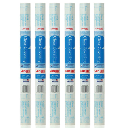 Clear contact paper is great for sealing and protecting. Use it on maps, for crafts, to cover notebooks and more. A grid on the reverse helps you measure accurately and cut neatly. Easy to install, easy to keep clean, and easy to remove. Special adhesive allows it to be repositioned during installation without leaving sticky residue. Each roll measures 18"W x 9'L. Pack of 6 rolls. Recommended age 5-14 years
