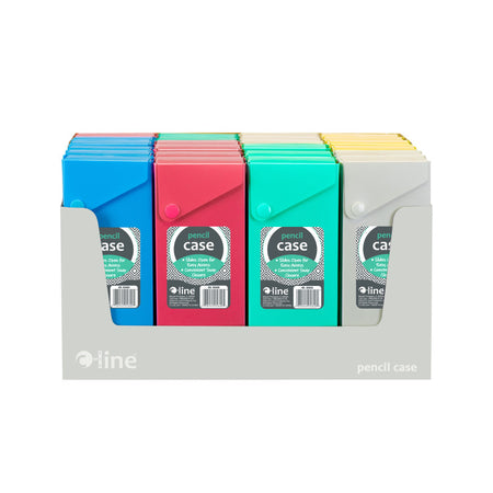 Durable polypropylene case slides open for easy access to pens, pencils and more. Features snap closure. Sold as a pack of 24 cases in assorted Tropic Tones colors (no color choice): Seaside Blue, Sunny Yellow, Seafoam Green, Sunset Red, and Sandy Gray. Recommended age 5+ years