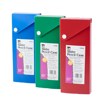 Slider Pencil Box allows for easy access. Complete with snap closure, these stylish boxes can fit anywhere. Pack of 24 pencil boxes in blue, red and green. Recommended age 3+ years