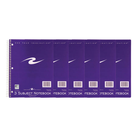 Spiral Notebook, 3-Subject, 120 Pages, Pack of 6