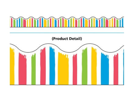 Vibrant, contemporary designs create warm, inviting spaces, tickle imaginations, and bring learning to life! Layer patterns on solids, sparkles, or metallics; or use as-is to showcase student work in style, make funky crowns and bookmarks, and engage and delight. The perfect finishing touch for whiteboards, reward charts, calendars … any display. Durable and reusable. 2¼" x 39' per pack. Coordinates with Bold Strokes Collection.