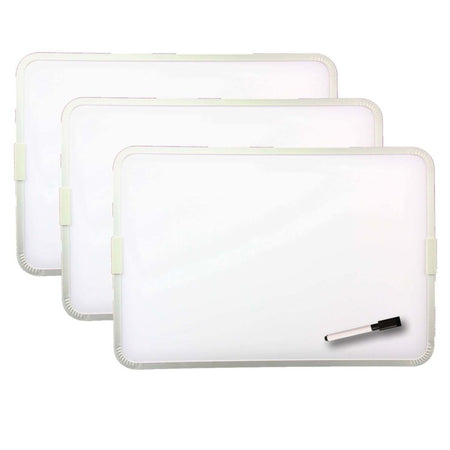 Both dry erase and magnetic, this board is perfect for use in a classroom, at home, or at the office. Features a magnetic and non-magnetic side for use. Comes with a magnetic dry-erase marker pen with cap eraser. Measures 9" x 12". Sold as 3 boards each with a dry-erase marker. Recommended age 3+ years