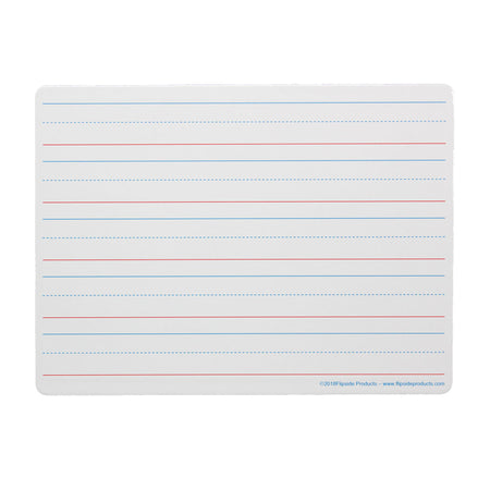 Ideal for teaching and practicing fundamentals for early learners and for use with magnetic manipulatives. Bright white board contains 5 sets of blue headline and broken midline plus red baseline format. Each line set measures 1 1/8" with 3/8" of blank descender space between sets. Back side is magnetic plain white dry erase. Boards feature a non-ghosting dry erase surface with rounded corners and smooth edges for comfort and safety. Backing is warp and chip resistant. Measure 12" x 9" x 0.125" thick. Recommended age 5+ years