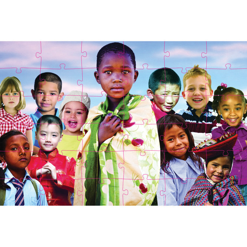 The We Are the World Floor Puzzle is a staple of MOJO Education. These vivid, high-definition images of children around the world feature 36 sturdy pieces that come together to form one of our warmest images: a scene of children from different races and backgrounds in one landscape setting. Ages 3+, 36 pieces, 3' x 2' finished size. Recommended age 3+ years