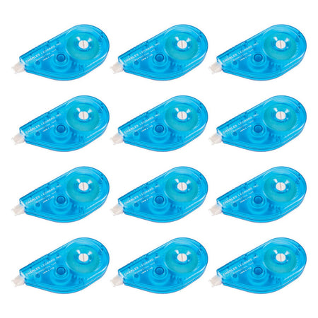 Sideways application provides easier use and promotes higher accuracy. Write or type immediately, with no drying time. No mess, odor, or fax and copy shadow. Wind up mechanism, makes for easy tape adjustment. White tape, non-acid and non-refillable. Sold as a pack of 12. Recommended age 11+ years