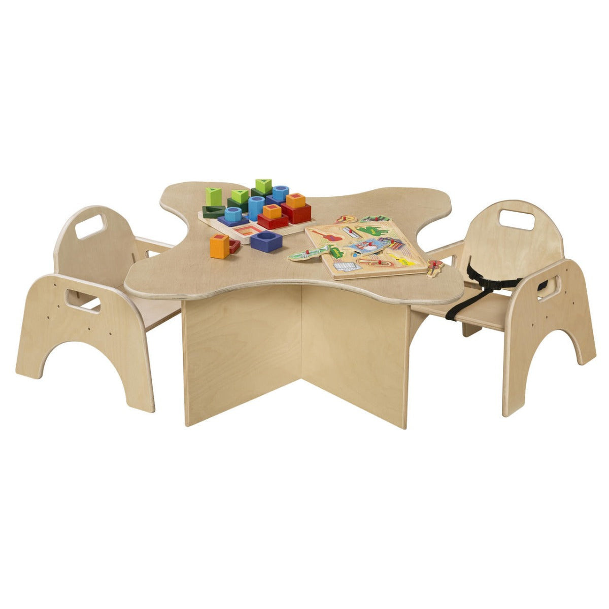 The Wood Designs Woodie is a stackable wooden chair that offers a comfortable, stable and durable support for your growing child. This rounded and naturally designed chair has back and side handles providing easy pick-up and collection. Attached is an adjustable three-point locking seat belt that safely secures your little ones. Our Wood Designs Woodie Line ranges in sizes to meet all childhood age groups. For this product we recommend the 11” chair height for ages 3 to 5 years. Constructed from Birch plywood with eased edges and coated with our exclusive Tuff-Gloss™® UV Finish making it resistant to stains and durable for any preschool or home settings. Pass down this chair throughout the generations with our lifetime warranty (limited to wood frame, warranty not included for belt or tray). The Wood Designs Woodie comes fully assembled to your door step. This product is GREENGUARD® Gold certified for non-toxic emissions and air quality. Dimensions: 20 1/8”H x 17 1/2"W x 16 3/4"D. There are two chairs per carton.