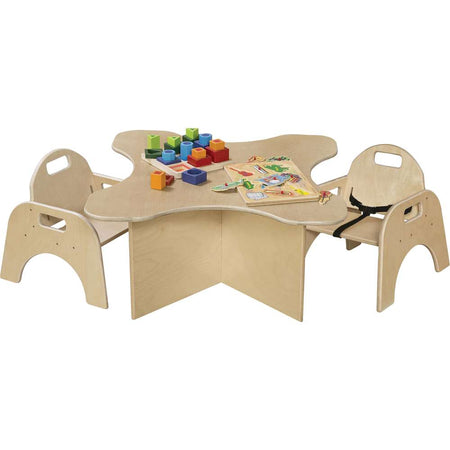 The Wood Designs Woodie is a stackable wooden toddler chair that offers a comfortable, stable and durable support for your growing child. This rounded and naturally designed chair has back and side handles providing easy pick-up and collection. Attached is an adjustable three-point locking seat belt that safely secures your little ones. Our Wood Designs Woodie Line ranges in sizes to meet all childhood age groups. For this product we recommend the 5” chair height for ages up to 18 months. Constructed from 100% Baltic Birch plywood with eased edges and coated with our exclusive Tuff-Gloss™® UV Finish making it resistant to stains and durable for any classroom or home settings. Pass down this chair throughout the generations with our lifetime warranty (limited to wood frame, warranty not included for belt or tray). The Wood Designs Woodie comes fully assembled to your door step. This product is GREENGUARD® Gold certified for non-toxic emissions and air quality. Dimensions: 13 3/8”H x 13 1/2"W x 15 1/4"D. There are two chairs per carton.